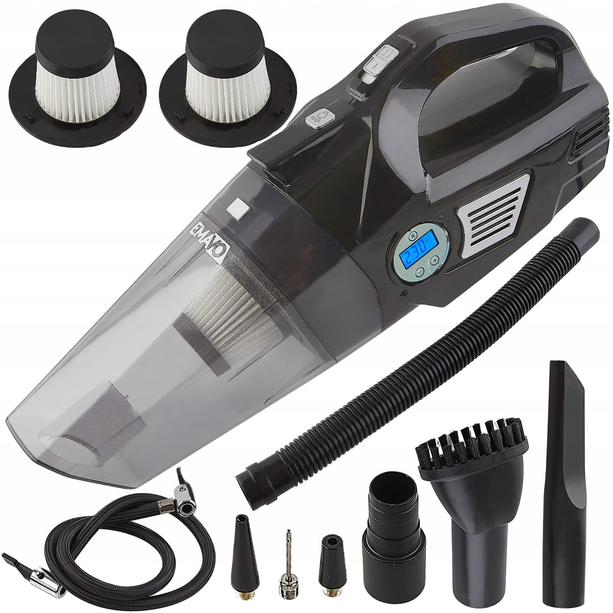 Dzięki dodatkowej funkcji kompresora, po odpowiednim ustawieniu przełącznika, odkurzacz EMAVO EODK-3in1 może być używany do pompowania opon samochodowych, piłek, materacy oraz innych przedmiotów wymagających nadmuchania.