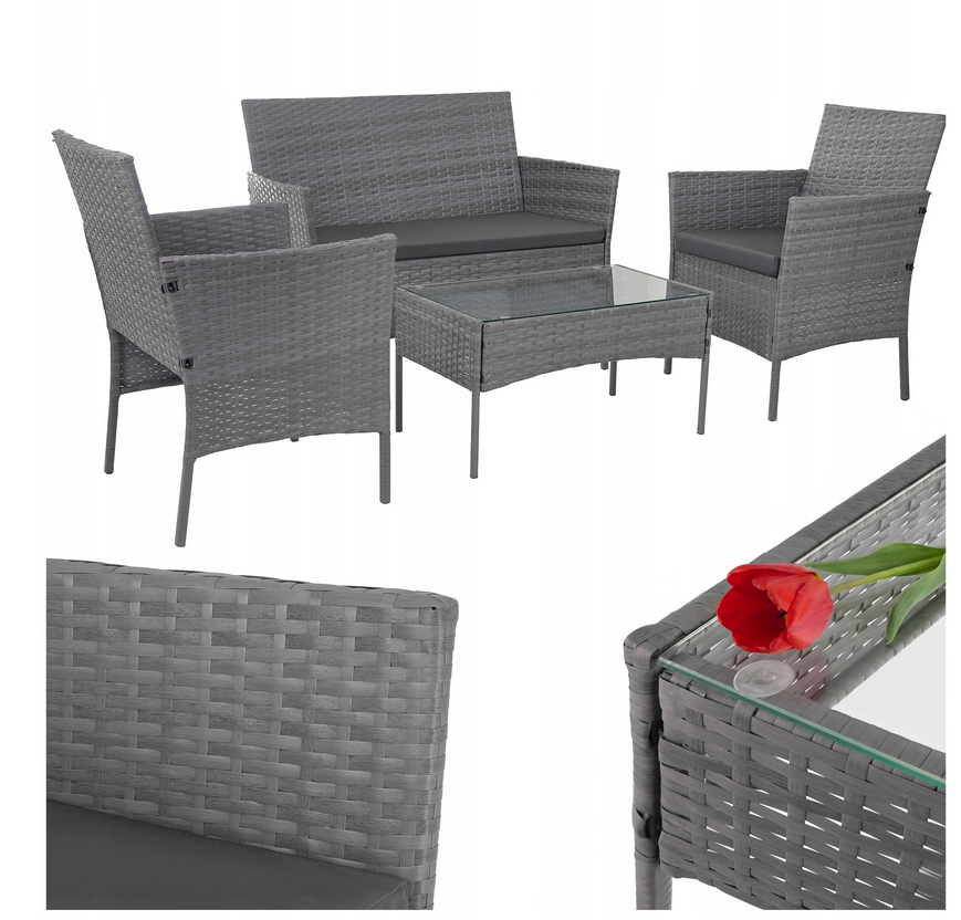 ✅ dlaczego . wygrywa? wytrzymała konstrukcja ze stali ocynkowanej i technorattanu, bezpieczny i elegancki blat ze szkła 5 mm 3R, wodoodporne i komfortowe poduszki, odporność na słońce i deszcz, szybki montaż oraz łatwe czyszczenie - wszystko to sprawia, że . zapewnia komfort, styl i trwałość w Twoim ogrodzie lub na tarasie przez lata
