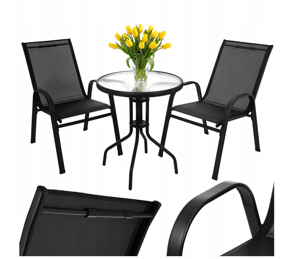 ✅ zestaw mebli balkonowych . oferuje wzmocnioną żelazną konstrukcję malowaną proszkowo odporną na korozję, materiał odporny na promieniowanie UV, wygodne i przewiewne siedziska z PVC dopasowujące się do ciała, elegancki stolik z hartowanym szkłem 5 mm, możliwość sztaplowania krzeseł oszczędzającą miejsce, szybki montaż w około 15 minut bez specjalistycznych narzędzi, łatwe czyszczenie oraz uniwersalne zastosowanie na balkon, taras, ogród lub do wnętrz
